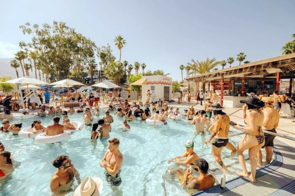 Proper swimwear is required. Guests who enter wearing long pants, denim, swimwear with rivets, buckles, metal, or plastic ornamentation will not be permitted in the pools or activity areas. Flotation devices, lounges, barbecues, glass containers and related items are not allowed inside The Palm Springs Surf Club. Men’s and Women’s changing rooms are provided, and lockers are available for a small fee. Tubes are provided at all attractions where required. Life vests are provided at no charge.