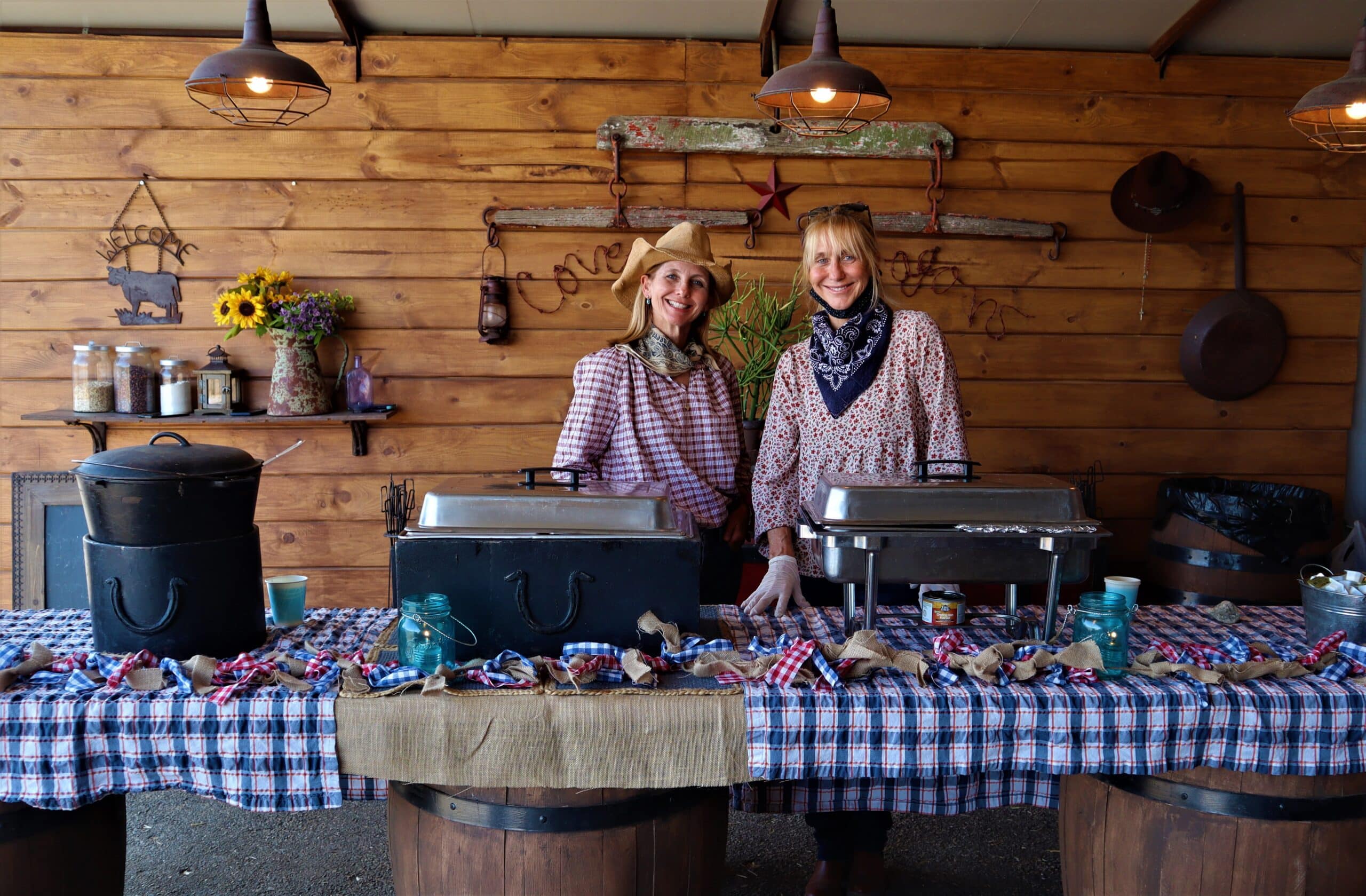 With reservations pre arrival, you can order the vegetarian option du jour. You can also enjoy the sides of Cowboy BBQ Beans, Prairie Coleslaw, and fresh bread. Sorry, we cannot accommodate a gluten free or vegan menu. You are welcome to bring your own food and enjoy it with your group. We will supply silverware!