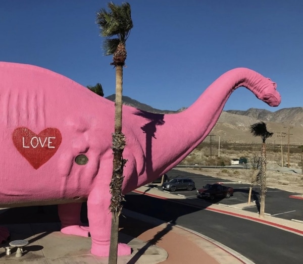 I would suggest going here on the way in to Palm Springs or on your way out! It is such a cute roadside stop! Two huge dinosaurs stand for you to admire and take pictures. More about it here.