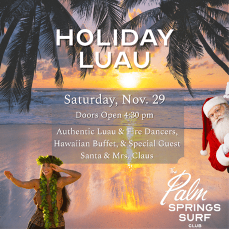 Join us on the Saturday after Thanksgiving for an unforgettable evening of island magic at the Palm Springs Surf Club! Experience authentic Polynesian hula and fire dancing, enjoy a delicious Hawaiian buffet dinner, and celebrate the season with a special appearance from Santa and Mrs. Claus. MORE
